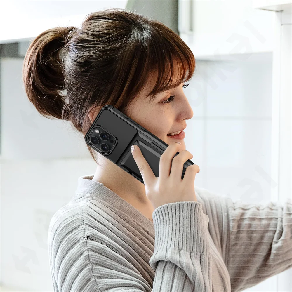 Iron Armor Hülle für iPhone A17 16 15 14 Pro Max Plus mit Karten Slot