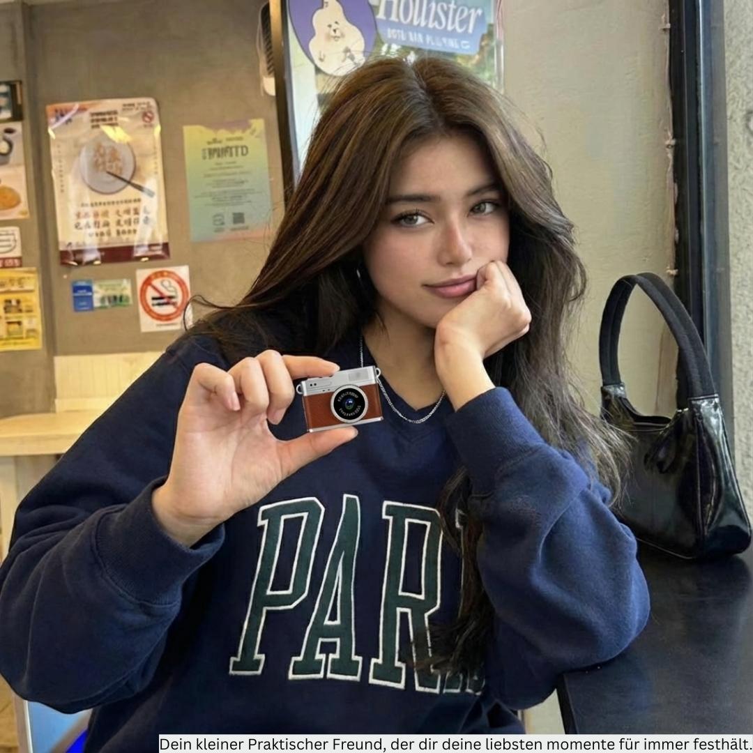 Mit der tragbaren Retro Mini Kamera können Sie spontane Momente in 1080P HD Qualität festhalten. Egal ob beim Spaziergang oder beim Treffen mit Freunden – die Kamera ist immer griffbereit und sorgt dafür, dass keine Erinnerung verloren geht.