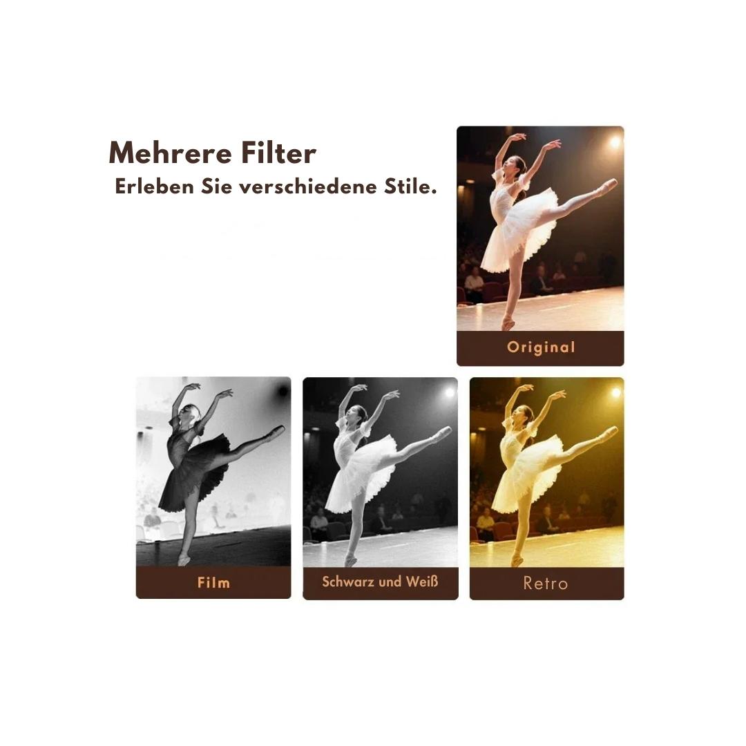 Dank der eingebauten Filter können Sie Ihre Fotos direkt auf der Kamera bearbeiten. Verleihen Sie Ihren Bildern einen einzigartigen Look, ohne aufwendige Bearbeitung am Computer. Perfekt für kreative Köpfe, die ihre Kunst direkt teilen möchten.